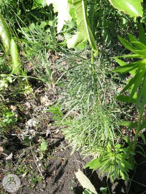 Jednoletá rostlina vysoká 20 až 70 cm, pokrytá bílými přitisknutými chloupky, s tenkým kořenem. Lodyha je vzpřímená, v horní části rozvětvená. Listy 2-4 cm dlouhé a téměř stejně široké, střídavé, opakovaně členité na úzké čárkovité špičaté úkrojky, spodní s řapíky, horní přisedlé.