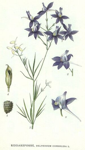 Polní odšťavňovačeNebo velkolepýNebo Pole Larkspur (lat. konsoliduje regalis, syn. delphinium sázky) je jednoletá bylina z čeledi pryskyřníkovitých (Ranunculaceae).